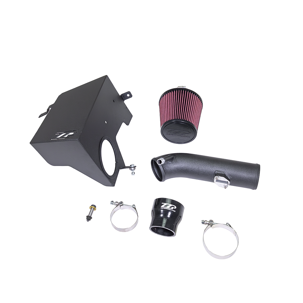 All necessary parts are provided for easy installation. CNC machined MAF sensor pad, PCV connection, silicone adapter, and stainless t-bolt clamps. Installs in stock location.