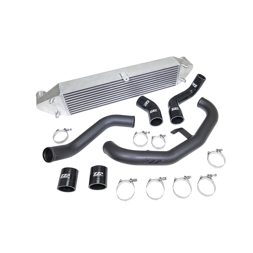 Our ZZPerformance front mount intercooler kit for the LTG powered Buick Regal GS is the ultimate bolt on kit for decreasing intake temps, making more power, and keeping your car reliable. The stock intercooler is only 1.25" thick and in place between the AC condenser and radiator, leading to poor performance and heat soaking. Our ZZP kit moves the intercooler to the front for direct airflow and a massive reduction in overall intake/manifold temps. Initial testing showed 40-50° reduction in manifold air temps vs. the stock intercooler system in a single 3rd gear pull.