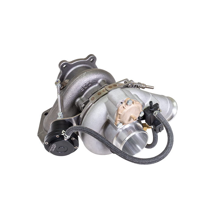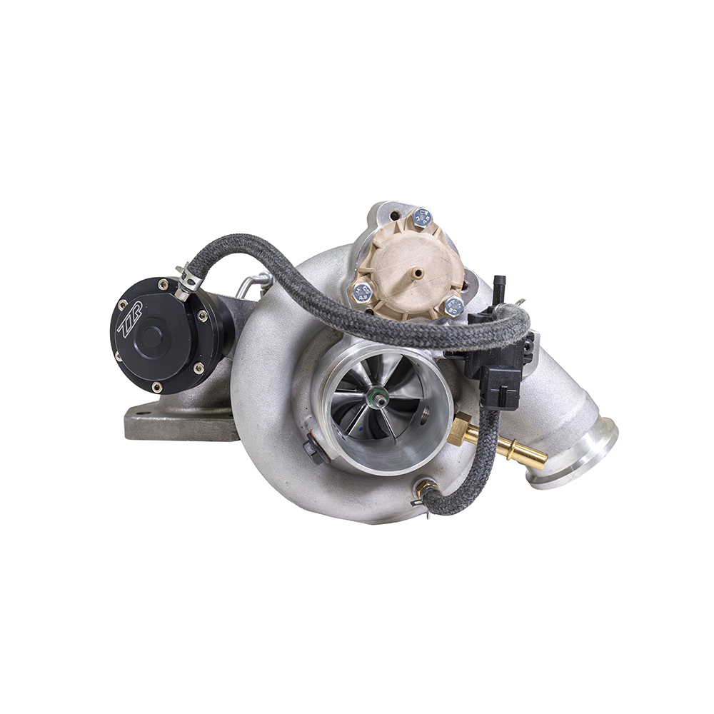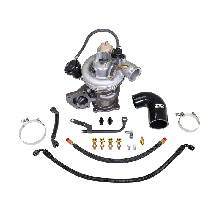 Our Z57 turbo is designed to bolt in place of the factory K04 turbo on the LNF engine. It allows you to reuse your existing intake and exhaust parts without any adapters. While boost will still be controlled by your ECM, you will need to have your tune set up for this turbo. The wastegate duty cycle chart is the main area that needs to be modified. Since this turbo is fully manufactured and marketed as a ZZP product, it also carries our standard 2 year warranty. Comes with all necessary hardware, Kappa specific silicone coupler, coolant, and oil lines for installation.