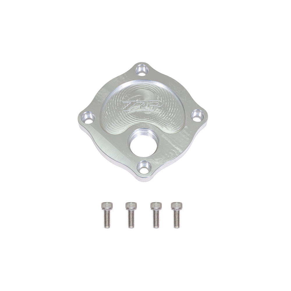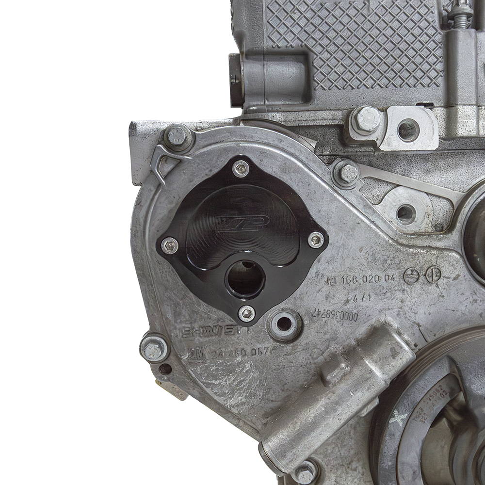 Our ZZPerformance Ecotec oil return plate adds a quick and easy drain for your custom turbo application. This cover replaces the water pump inspection plate on the timing cover and includes a provision for a -10orb fitting (not included).